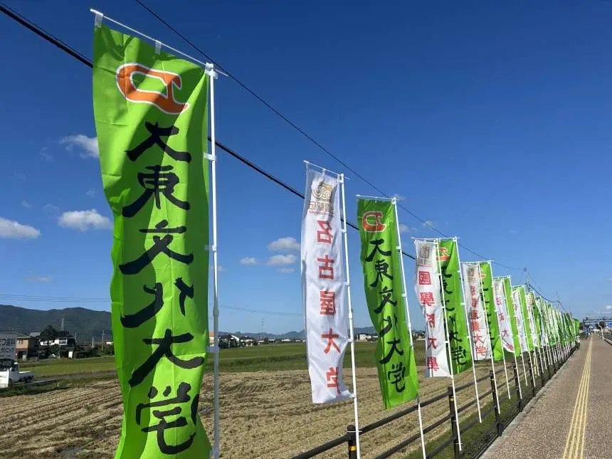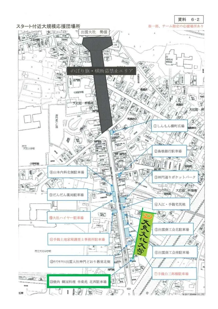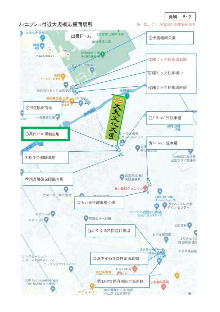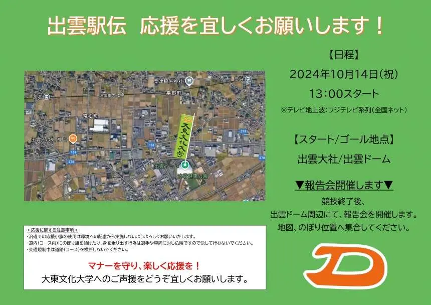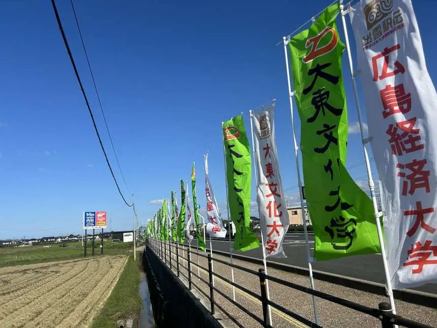 出雲駅伝では、事務局許可制のもと沿道へのぼり旗を設置することが可能です。今大会は以下場所へ設置しておりますので、沿道ライトグリーン幟旗にもご注目ください。
