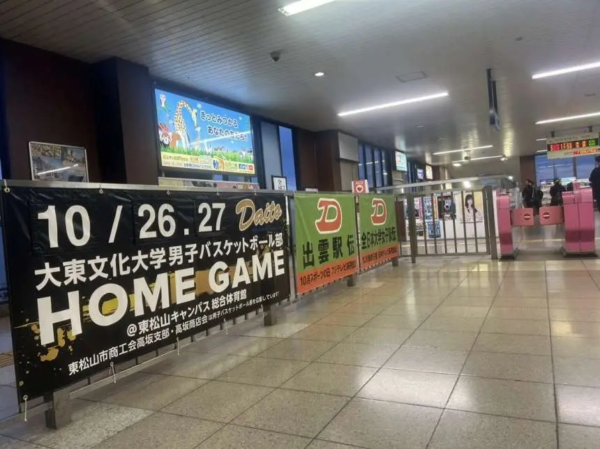 東武東上線高坂駅改札前スペース、東松山キャンパス内キャンパスプラザには、イベント告知横断幕が登場。
