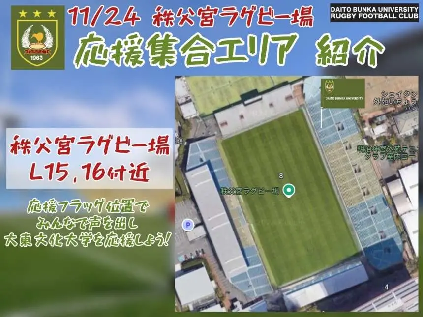 秩父宮ラグビー場入口 大東文化大学チームテント前/10:00~11:30