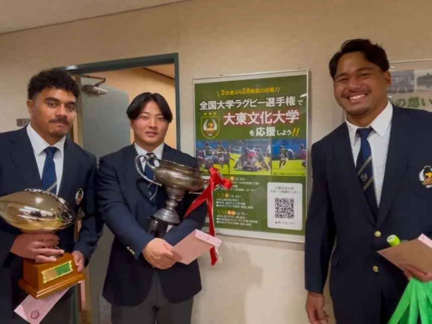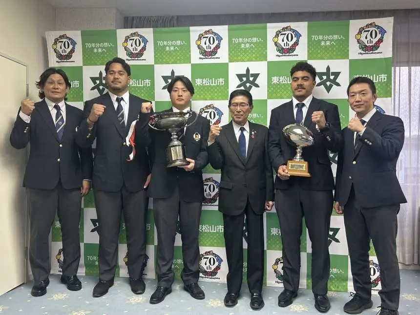 大東文化大学ラグビー部は12月18日(水)東松山市 森田光一市長へ表敬訪問を行いました。7年振り9度目のリーグ優勝を報告し、12月22日(日)全国大学ラグビーフットボール選手権 準々決勝への意気込みを伝えました。東松山市民の皆様、日頃より大東文化大学へご声援を頂きまして誠にありがとうございます。全国の舞台で東松山市を代表し戦います。