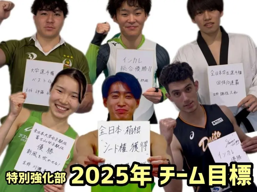 大東文化大学運動部特別強化部5クラブ6セクション(陸上競技部男子・女子長距離ブロック、ラグビー部、テコンドー部、男子バスケットボール部、スケート部)に2025年のチーム目標をインタビューしました。2025年シーズンも引き続き、大東文化大学へご声援をよろしくお願いいたします。