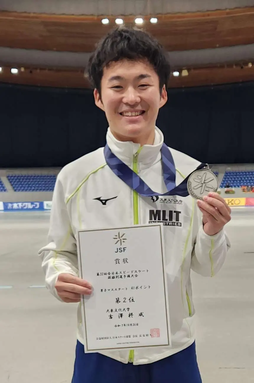 そのなかで、吉澤柊威選手(経営4年)がマススタートで第2位、横山颯介選手(スポーツ科1年)がジュニアW杯派遣選考部門500mで第3位の成績を収めました。