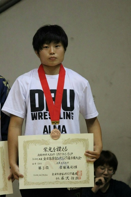 8月20日から23日まで駒沢オリンピック公園総合運動場体育館(東京都)で行われた全日本学生レスリング選手権大会で、本学レスリング部の吉柴未彩輝選手(スポーツ科1年)が女子55kg級に出場し、3位に入りました。