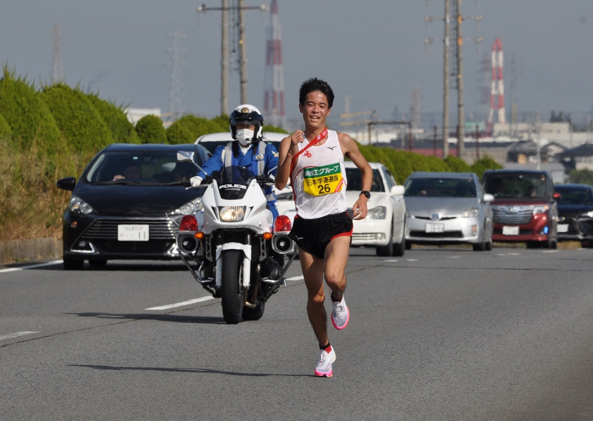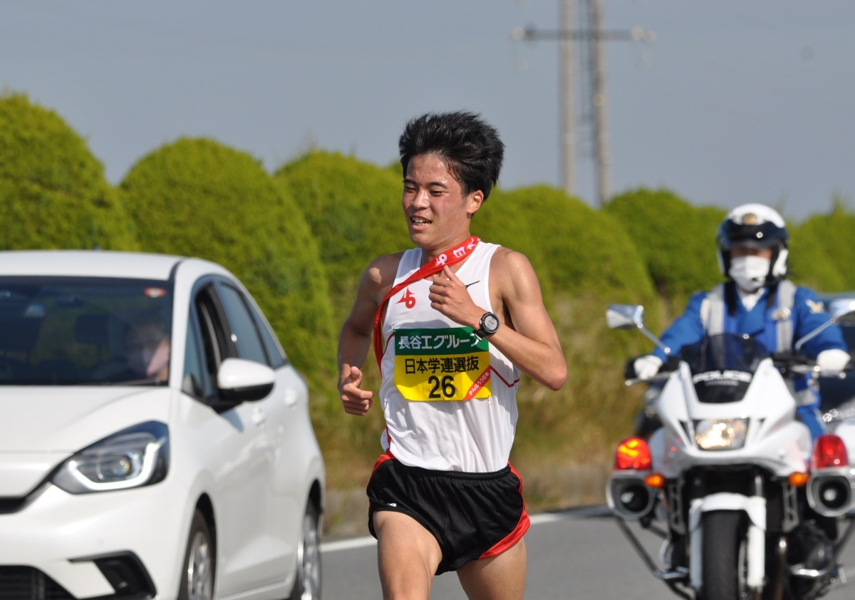 2021年11月7日(日)に開催された秩父宮賜杯第53回全日本大学駅伝対校選手権大会で、陸上競技部男子長距離の久保田徹選手(国際関係2年)が日本学連選抜チーム第4区で出場しました。四日市市羽津~鈴鹿市林崎町間11.8kmを34分31秒で走り、区間8位でした。
