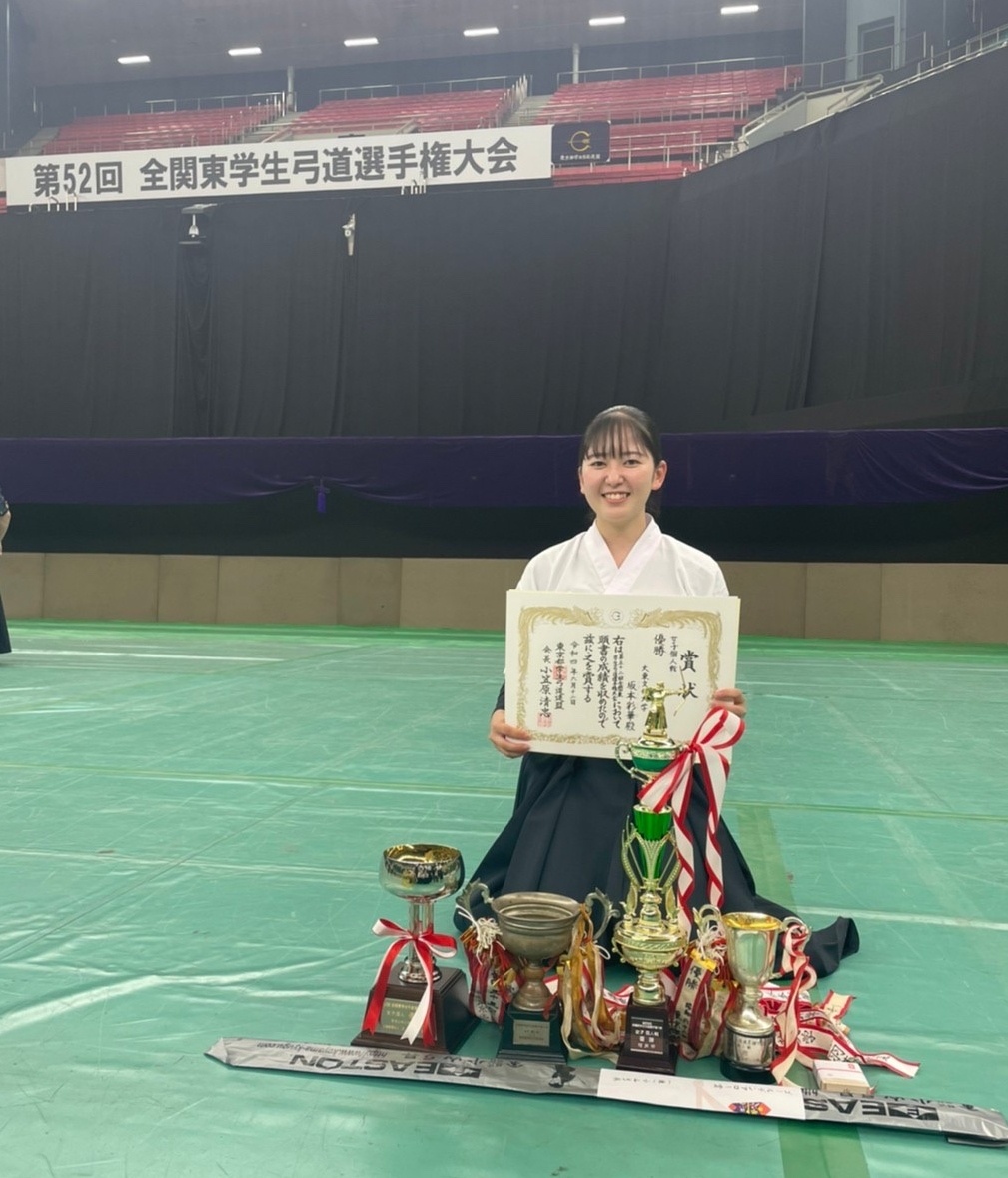 第52回全関東学生弓道選手権大会・決勝が6月11日、12日、日本武道館で開かれ、女子個人戦で坂本彩華選手(教育1年)が優勝、女子団体はベスト4に入りました。男子個人では、小島祐太選手(社会経済4年)が6位入賞しました。