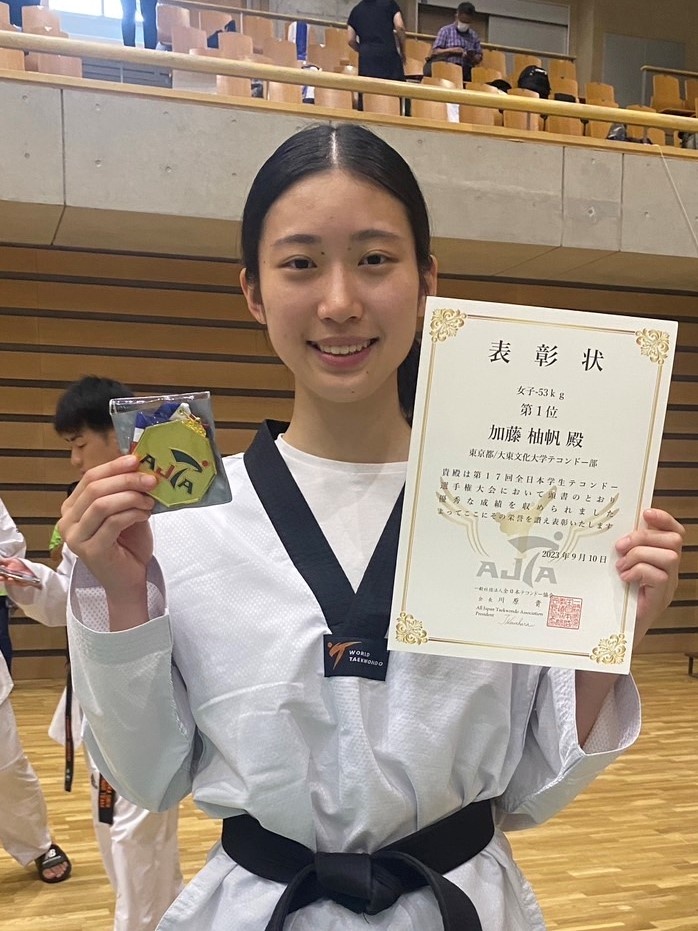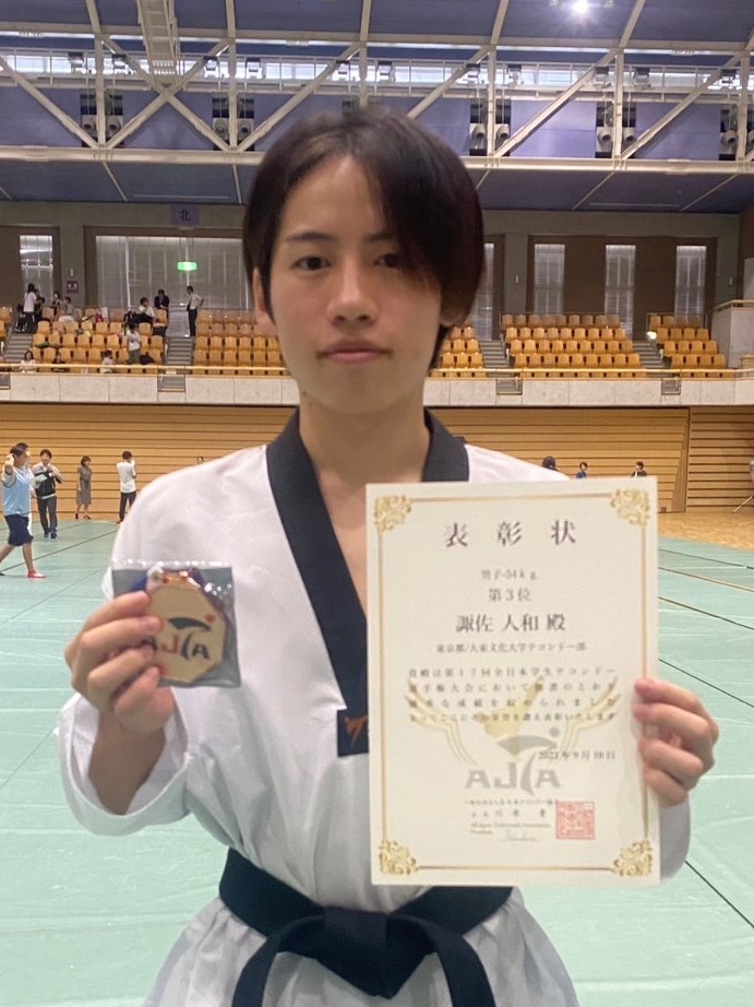 今回の大会で応援してくれた方々、日々ご指導してくださっている監督、コーチや先生方、テコンドー部の仲間たち、そしていつも自分を支えてくれる家族に感謝の気持ちでいっぱいです。