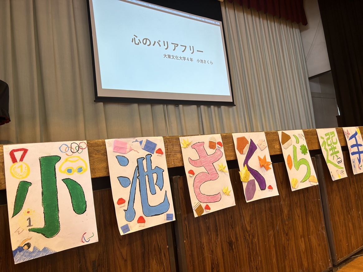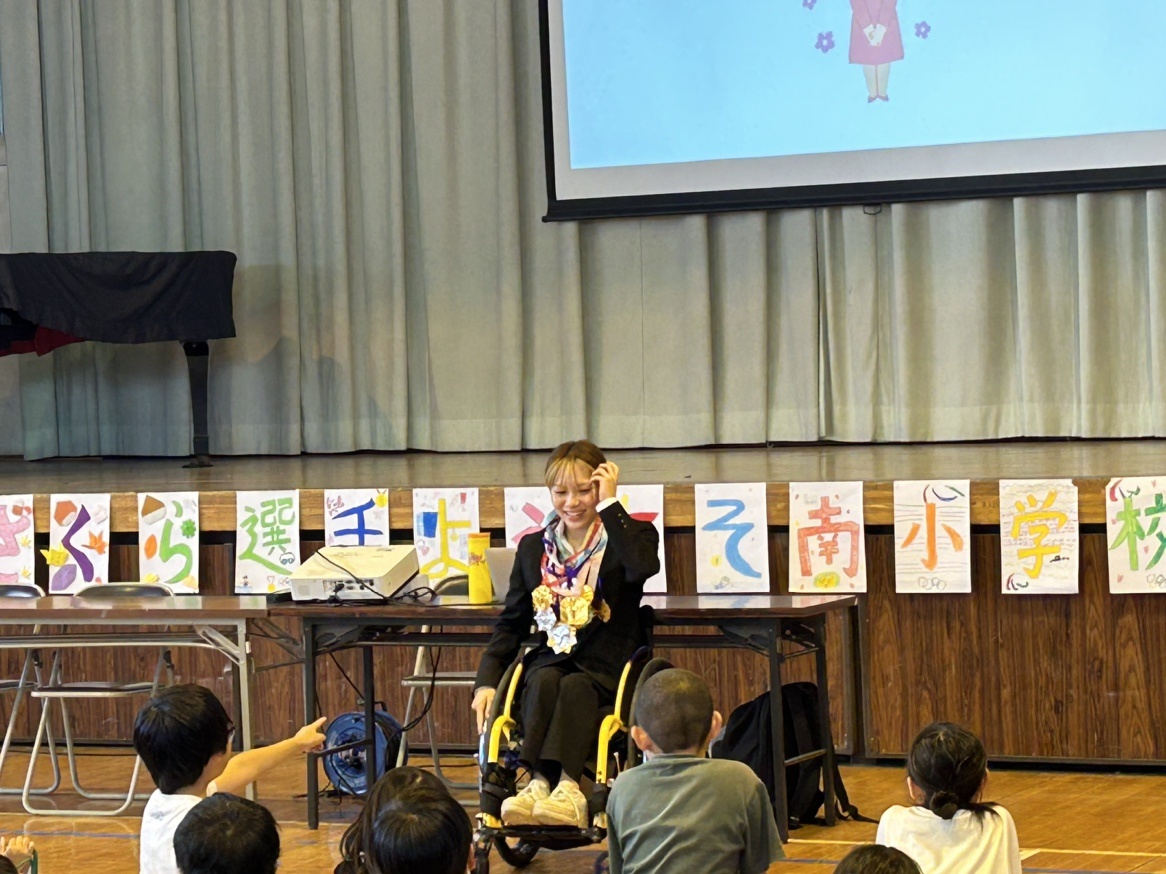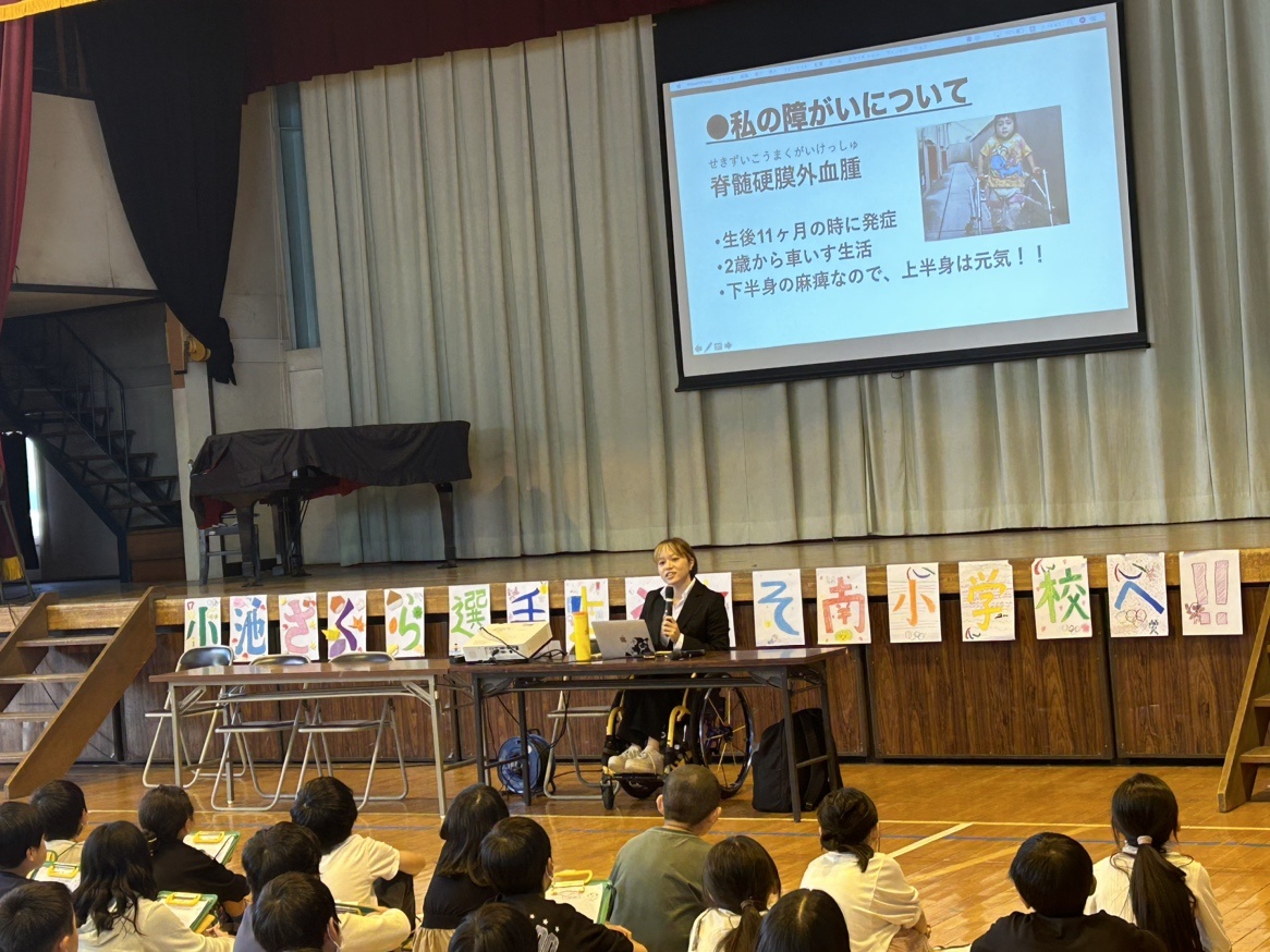 2023年10月31日(火)に本学水泳部所属、東京パラリンピック2020へ出場した小池さくらさん(スポーツ科学科4年生)が、坂戸市立南小学校4学年総合時間にて講話を行いました。当日小池さんからは、自身の障がいについて話した上で、以下内容を講話しました。