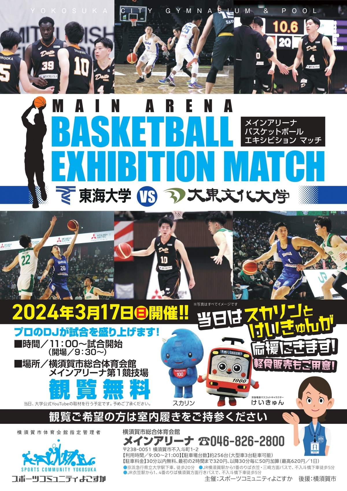 2024年3月17日(日)スポーツコミュニティよこすか主催 エキシビジョンマッチ vs東海大学へ男子バスケットボール部が参加します。