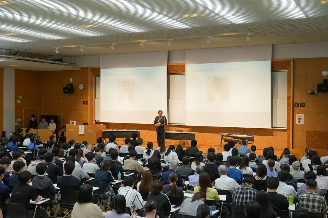 小出高義教職課程センター所長から、「ダニー・ネフセタイさんは日本に在住して40年以上になり、家具職人であり同時に平和活動を行っています。このようなご講演を昨年は3日に1回はされています。今日はみんなで大いに学びましょう」と講師紹介がありました。