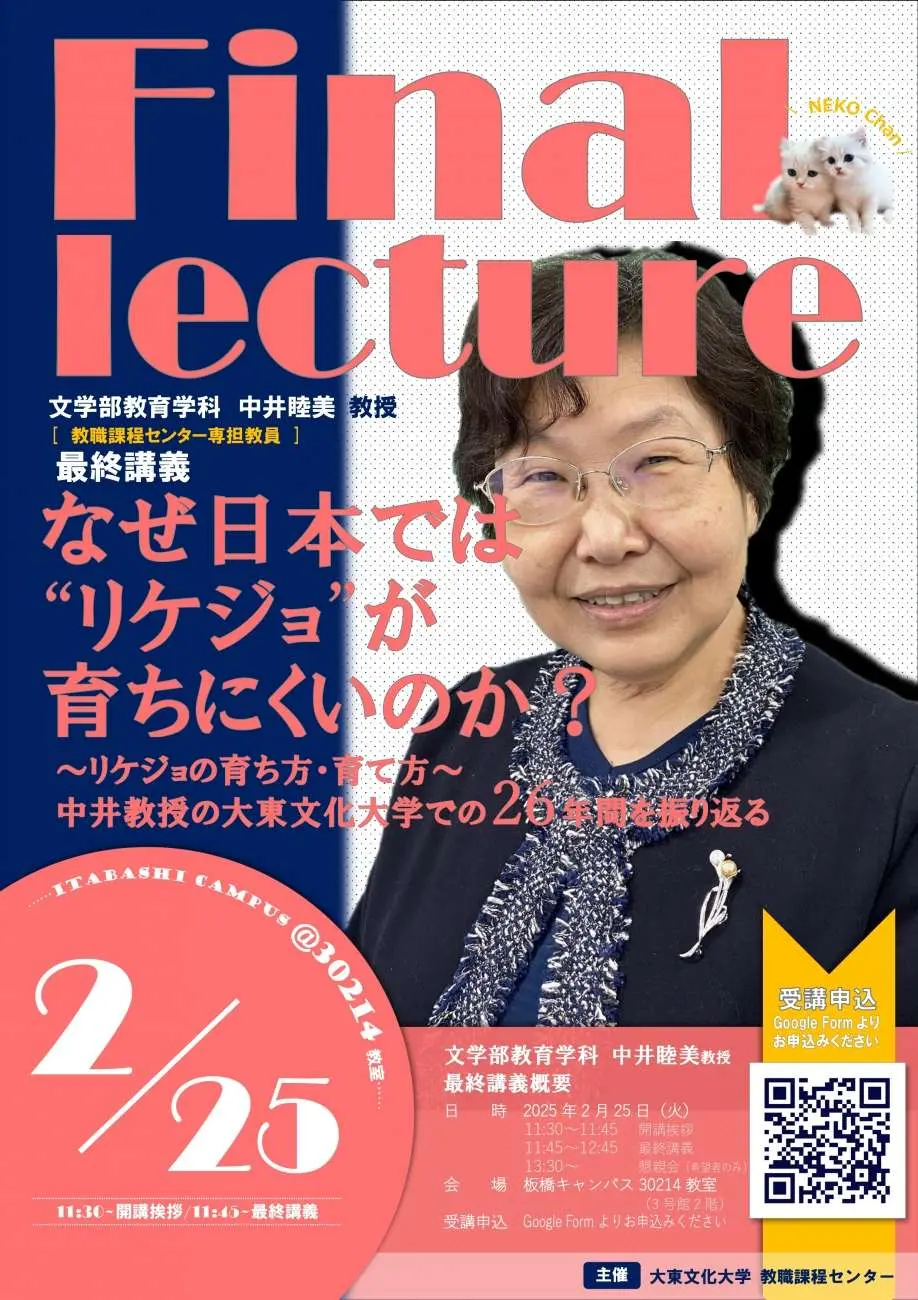 中井睦美教授(教職課程センター専担教員)最終講義のお知らせ