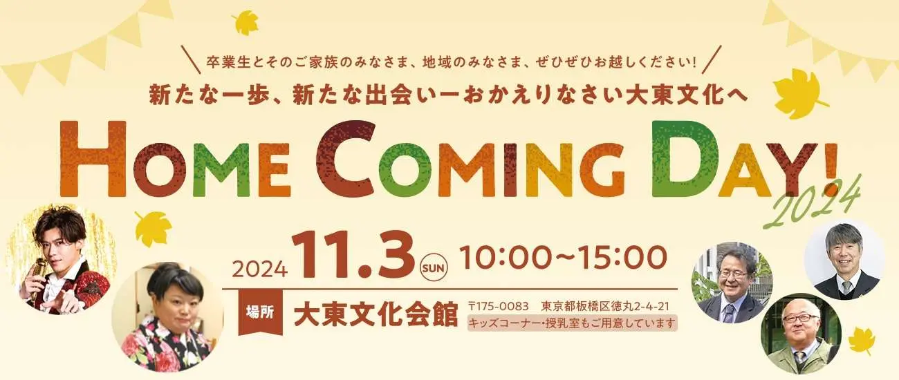 ホームカミングデーは、大東文化大学がご卒業生や地域の皆様をあたたかくお迎えする日です。運営には多くの学生が参加しており、貴重な交流の場でもあります。同日には別途板橋校舎にて「大東祭(文化祭)」も開催を予定しています。ぜひご学友同士、またご家族とともに母校の“今”に触れていただき、本学での秋の一日を心ゆくまでご満喫ください。企画の詳細などは、随時本サイトに掲載します。