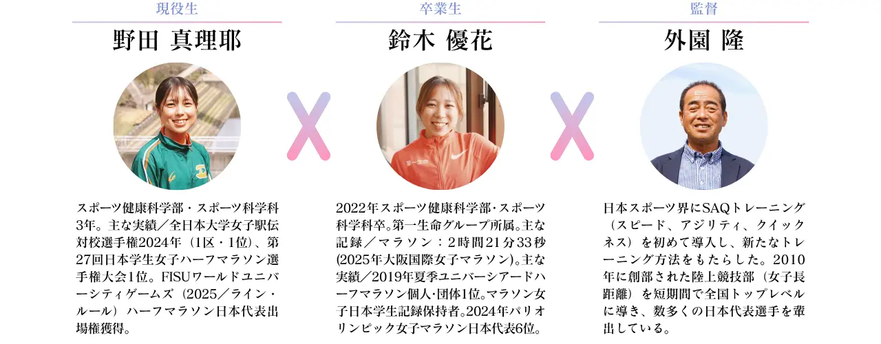 パリオリンピックでマラソン女子6位に入賞した鈴木優花さんをお招きし、陸上競技部(女子長距離)の外園監督と、現役生・野田さんによるスペシャル座談会を行いました!